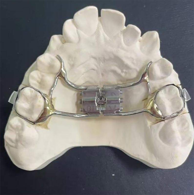 İlk olarak, bir genişleticinin neye benzediğine bir göz atalım. Büyüme hamlesi olan maksiller stenozu olan çocuklar için, midpalatal sütürün kademeli olarak açılması, sütürdeki bağ dokusunu gererek yeni kemik dokusunun oluşumunu uyarabilir ve böylece bazal kemik ve diş kemerinin genişliğini arttırabilir. Genel olarak, hasta ne kadar genç olursa, yeni kemik birikimi o kadar belirgin olur ve bazal kemiği genişletmek o kadar kolay olur. Aksine, yaşlı yetişkin hastalar için, sadece bir genişletici kullanılırsa, diş kemerinin genişlemesi çoğunlukla dişlerin bukkal hareketi ile elde edilir. Bu gibi durumlarda, Çin diş laboratuarı ve WM diş laboratuvarı, orta spalatal sütürün (cerrahi destekli hızlı palatal genişletici, SARPE) açılmasına yardımcı olmak için ilk olarak maksillofasiyal cerrahi gerçekleştirilerek daha iyi sonuçların elde edilebileceğini ve ardından genişleme tedavisi izlemektedir.